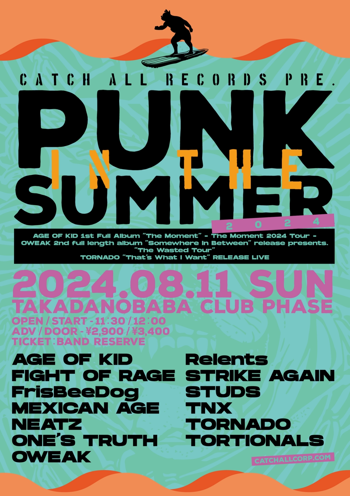 The Moment 2024 Tour@高田馬場CLUB PHASE 2024/08/11(Sun) 2024年08月11日(日) 高田馬場CLUB PHASE W/FIGHT OF RAGE,FrisBeeDog,MEXICAN AGE,NEATZ,ONE'S TRUTH,OWEAK,Relents,STRIKE AGAIN,STUDS,TNX,TORNADO,TORTIONALS OPEN:11:30 START:12:00 ADV 2900円 DOOR 3400円