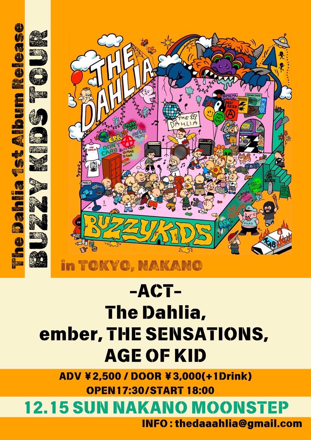 The Dahlia“BUZZY KIDS TOUR” 2024/12/15(Sun) 2024年12月15日(日) 中野Moonstep W/The Dahlia,THE SENSATIONS,ember OPEN:17:30 START:18:00 ADV 2500円 DOOR 3000円